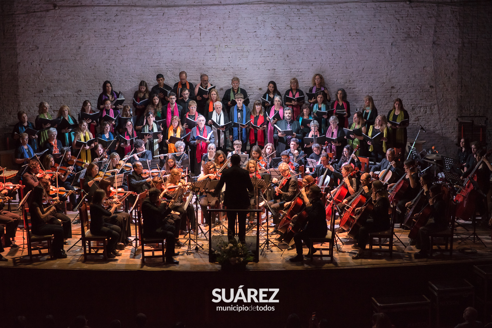 Un total de 115 artistas en escena entre el Coro Municipal de Mayores “Héctor David Long”, el Coral Artimusa de Pigüé, el Arteens, Coro de Voces Blancas de Artimusa, y la Orquesta de Jóvenes y Adultos de Coronel Suárez, ofrecieron un espectáculo de jerarquía y una experiencia musical única.