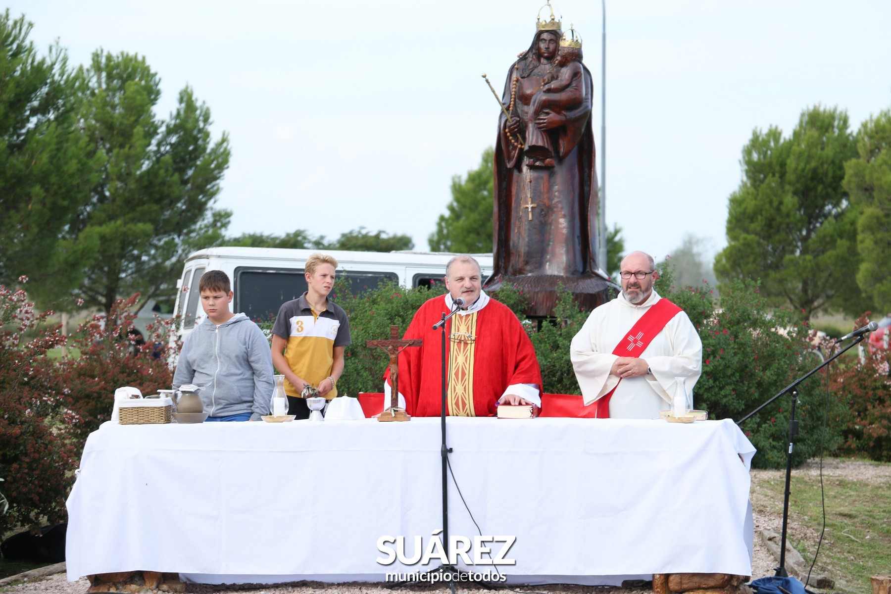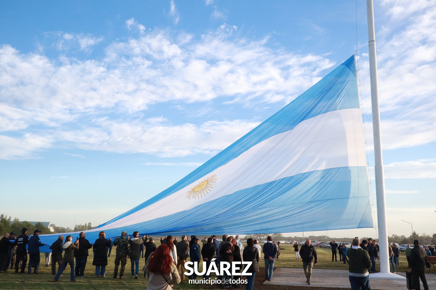 Por la tarde y tras la celebración de la Santa Misa, el pueblo Malvinero de Coronel Suárez se congregó alrededor del imponente mástil para rendir homenaje a nuestros Veteranos de Guerra y los caídos en el Atlántico Sur.