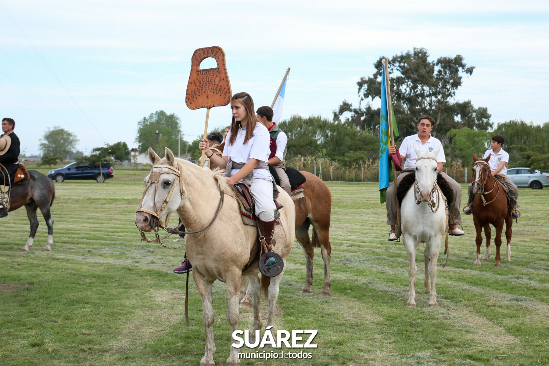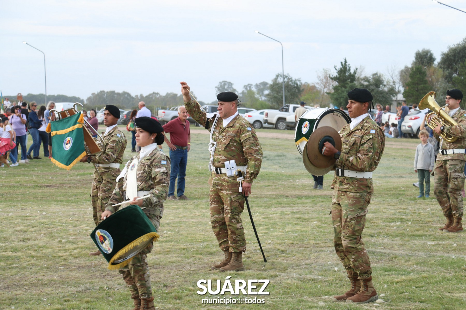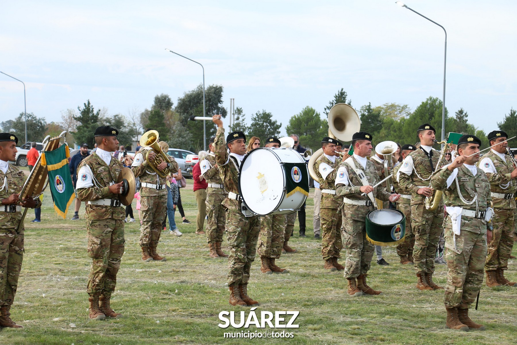 Los históricos soldados Arribeños del Regimiento de Infantería Mecanizada N° 3 “Manuel Belgrano” de Pigüé, hicieron la guardia de honor en el mástil durante el acto, mientras que las bandas Bartolomé Meier y la banda Militar Cura Malal, del Regimiento de Pigüé, interpretaron el Himno Nacional, la Marcha de Malvinas y el toque de silencio, en homenaje a los caídos en las islas, marcando uno de los momentos más emotivos del acto, contando además, con el acompañamiento de jinetes.