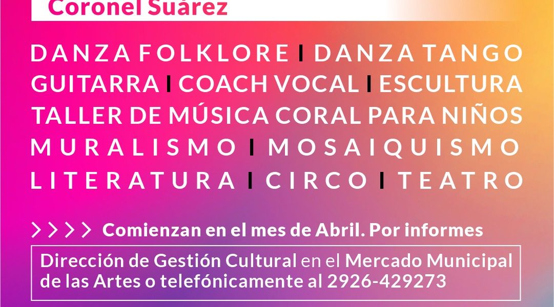 Interesantes y atractivas propuestas que impulsa el Municipio de Coronel Suárez a través de la dirección de Gestión Cultural