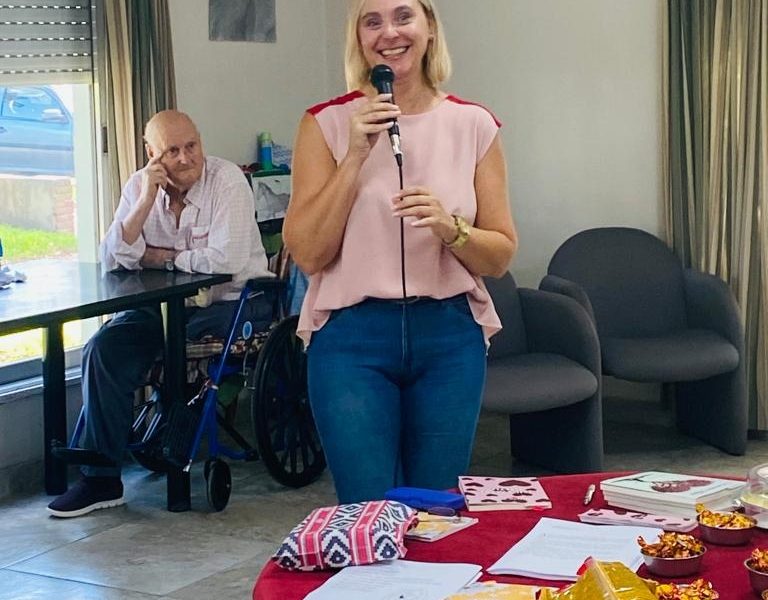 Fue en el marco del 75° aniversario de la institución y estuvo a cargo de la escritora y profesora en Ciencias del Lenguaje y la Comunicación, Silvia Frank; jornada que se desarrollo en el quincho del Hogar de Ancianos “Domingo Goñi”. En el taller, los residentes participaron activamente leyendo poemas de los libros escritos por Silvia Frank, quién al finalizar