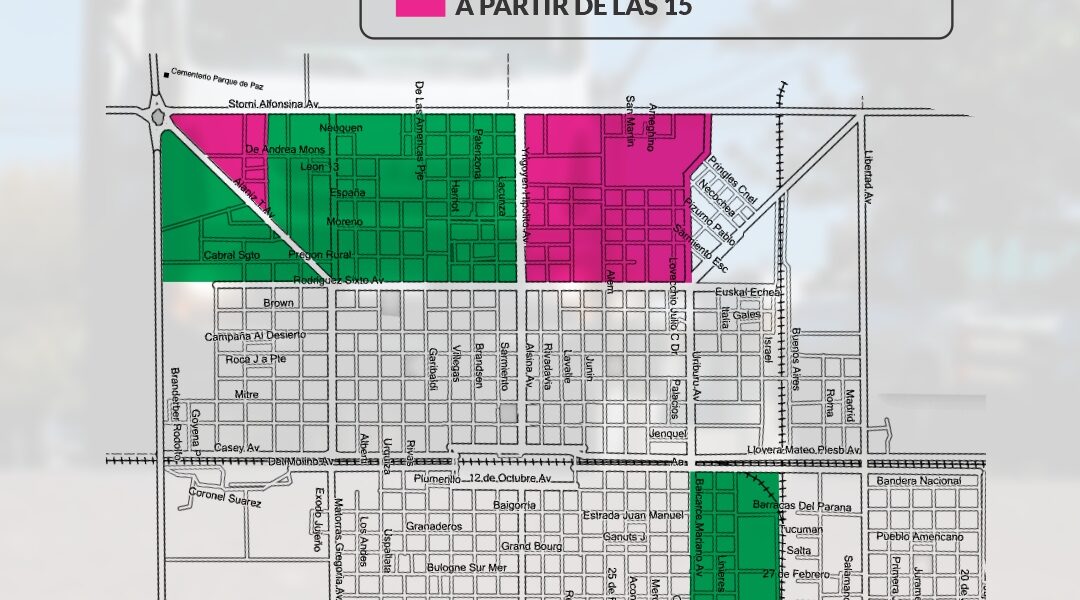 La Secretaría de Servicios Públicos informa que a partir de esta semana se implementarán nuevos horarios en la recolección de residuos húmedos en los sectores indicados en el mapa adjunto en el siguiente link: https://bit.ly/nuevarecoleccion . Barrios marcados en color rosa: Lunes, miércoles y viernes A partir de las 15:00 hs Barrios marcados en color verde: Martes y jueves A