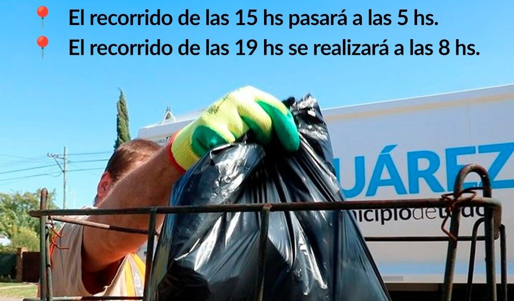 La secretaria de Servicios Públicos informa a la comunidad que con motivo de los feriados nacionales del jueves 2 de abril -Día del Veterano y de los Caídos en la Guerra de Malvinas- y viernes 3 de abril -Viernes Santo-, el servicio de recolección de residuos domiciliarios se prestará de la siguiente manera: El recorrido de las 15:00hs pasará