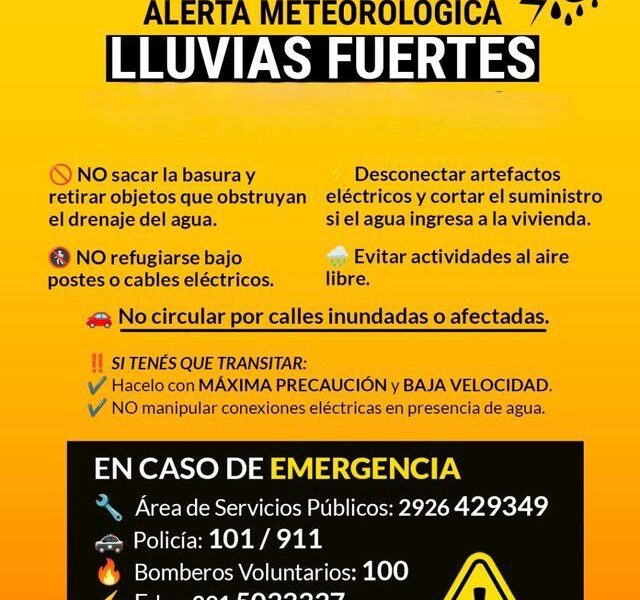 El área será afectada por lluvias y tormentas fuertes, algunas localmente severas. Las mismas estarán acompañadas principalmente por precipitaciones abundante en cortos períodos. El Municipio monitorea el tránsito de la tormenta, recordamos a la comunidad mantenerse informada por los canales oficiales por donde se actualizará la información pertinente.