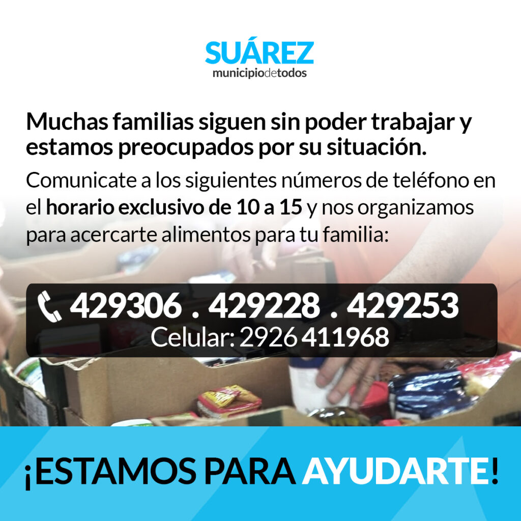 Comunicate en el horario de 10 a 15 a los siguientes números de teléfono así nos organizaremos para acercarte alimentos para tu familia.