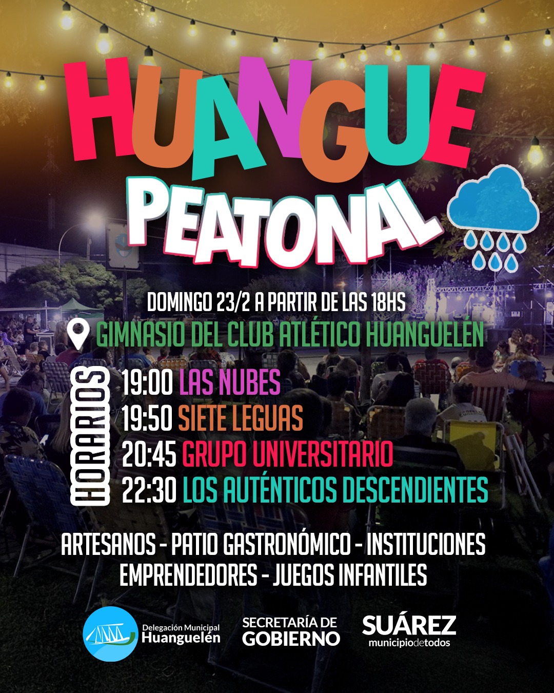 ¡Ni la lluvia nos para! La #HuanguePeatonal se traslada al gimnasio del Club Atlético Huanguelén para que podamos disfrutar de una noche increíble en el evento que moviliza a toda la comunidad.