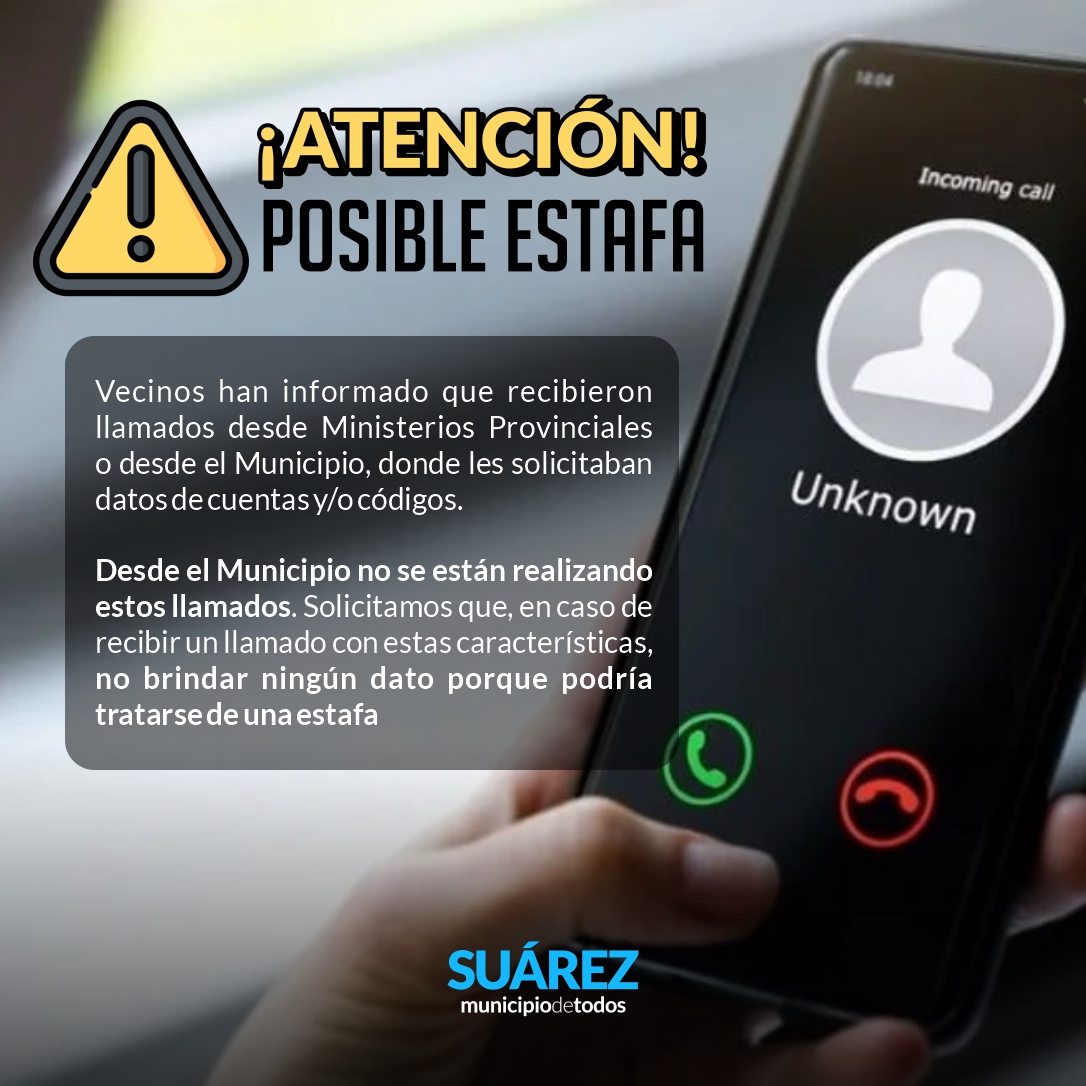 Vecinos han informado sobre llamados desde número privado donde solicitan datos de cuentas y/o códigos, mencionando a ministerios provinciales y al Municipio.