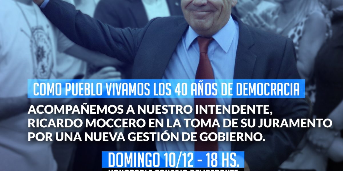 El intendente Ricardo Moccero, junto al jefe de Gabinete Mauro Moccero, participaron en la noche del martes 9 de diciembre de la sesión especial en la que se llevó a cabo la jura y asunción de los ocho concejales que resultaron electos en las últimas elecciones legislativas. Prestaron juramento cuatro ediles del Movimiento para la Victoria: Carlos Rudy, Magdalena