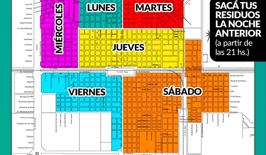 Informamos que, a partir de este fin de semana, la recolección diferenciada ya no se realizará los días domingo. Nuevo día de recolección: sábados. Por lo tanto, los residuos deberán sacarse los días viernes por la noche. Agradecemos la colaboración de todos para mantener nuestros barrios limpios y organizados