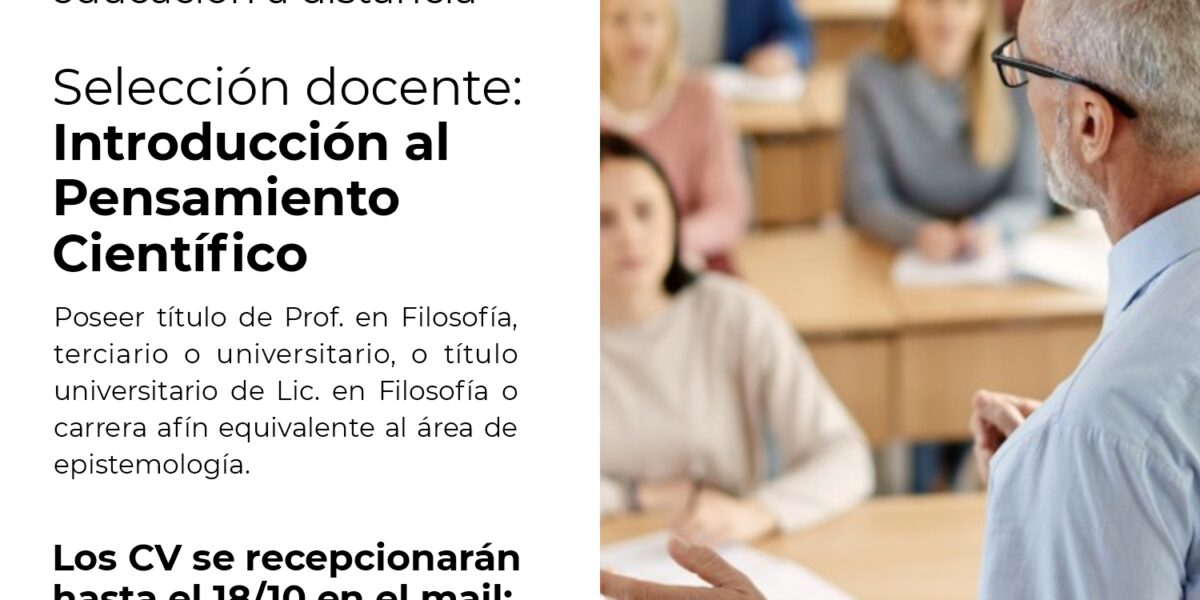 La Universidad de Buenos Aires (UBA), a través de su programa de educación a distancia UBA XXI, abre la convocatoria para tutores de la asignatura Introducción al Pensamiento Científico. Perfil del aspirante: Título de Profesor/a o Licenciado/a en Filosofía o carreras afines en el área de epistemología. Experiencia docente en ámbitos universitarios o terciarios (preferentemente), o en Escuela Media. Conocimiento