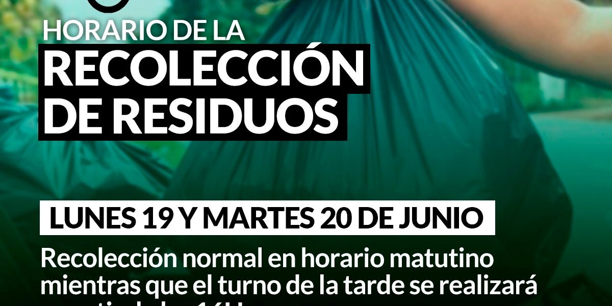 🚚🚮La secretaría de Servicios Públicos informa a la población que este SÁBADO 17 DE JUNIO, la recolección de residuos será normal. En tanto, los días LUNES 19 y MARTES 20 DE JUNIO, la recolección de residuos será normal en horario matutino, mientras que por la tarde se realizará a partir de las 16 hs.