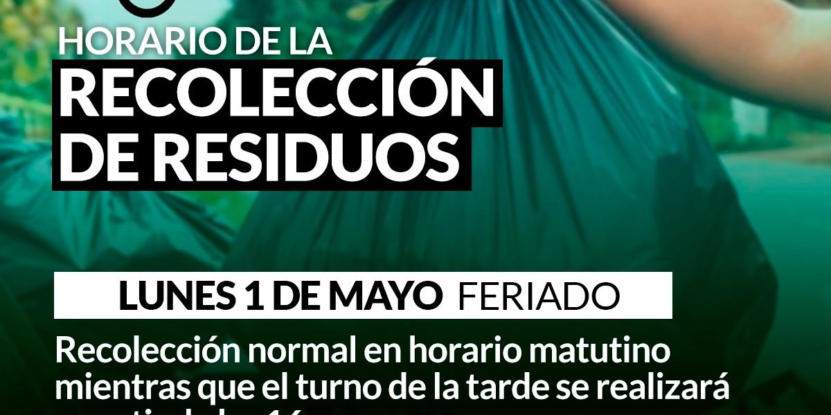 🚚🚮La secretaría de Servicios Públicos informa a la población que el próximo lunes 1 DE MAYO, feriado nacional por el DÍA INTERNACIONAL DEL TRABAJADOR, la recolección de residuos será normal en horario matutino, mientras que por la tarde se realizará a partir de las 16 hs.