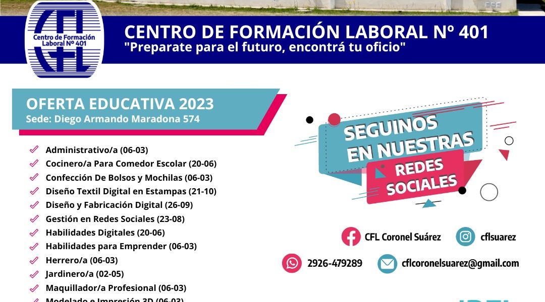 Comienza el período de inscripción para el nuevo ciclo lectivo en el Centro de Formación Laboral. Ingresá al siguiente enlace: https://cursosipfl.trabajo.gba.gob.ar/login