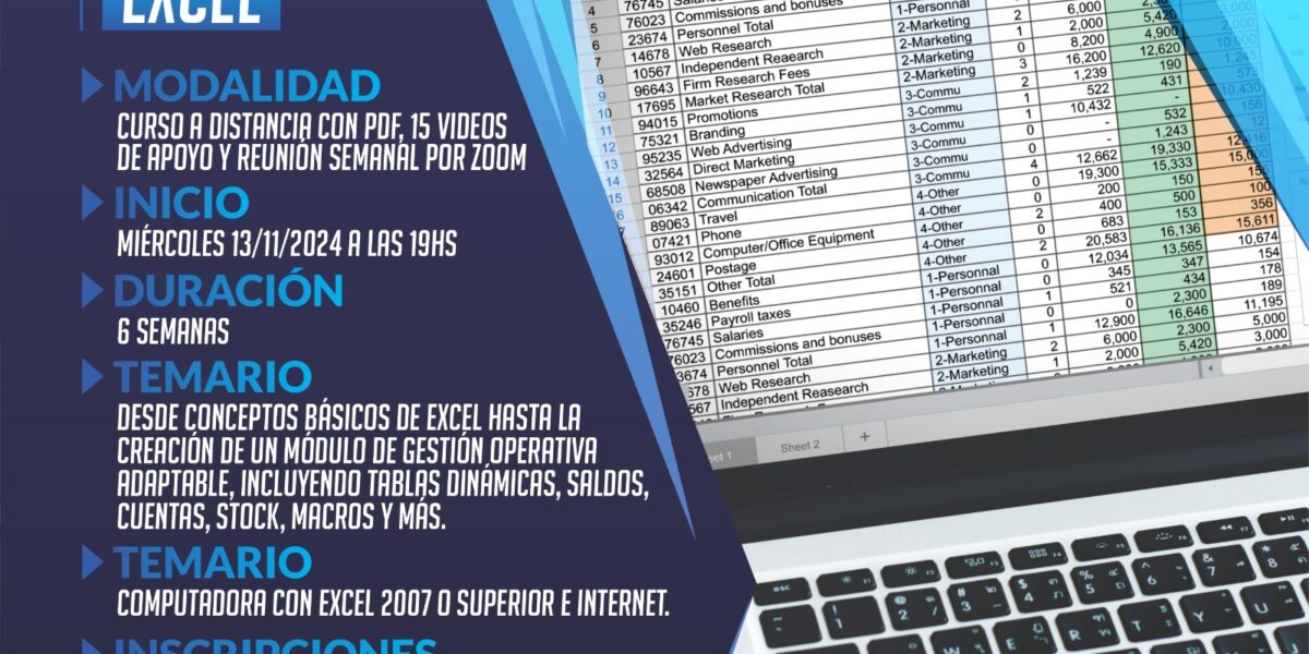 Las clases comienzan el 13 de noviembre por Zoom. Gratuito. Inscripción: Desde el 4 hasta el 11 de noviembre a través del formulario digital: https://bit.ly/excelencreus CREUS abre la inscripción al curso online “Gestión Operativa y Financiera con Excel”, diseñado especialmente para comerciantes, emprendedores, estudiantes y profesionales que deseen crear planillas de cálculo adaptadas a sus locales comerciales y mejorar la