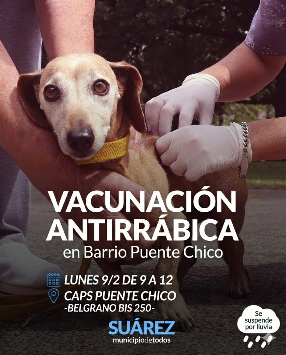 El equipo de profesionales desarrollará este LUNES 9 DE FEBRERO, una nueva jornada de vacunación antirrábica gratuita para perros y gatos en el CAPS de Barrio Puente Chico –Belgrano Bis 250-.