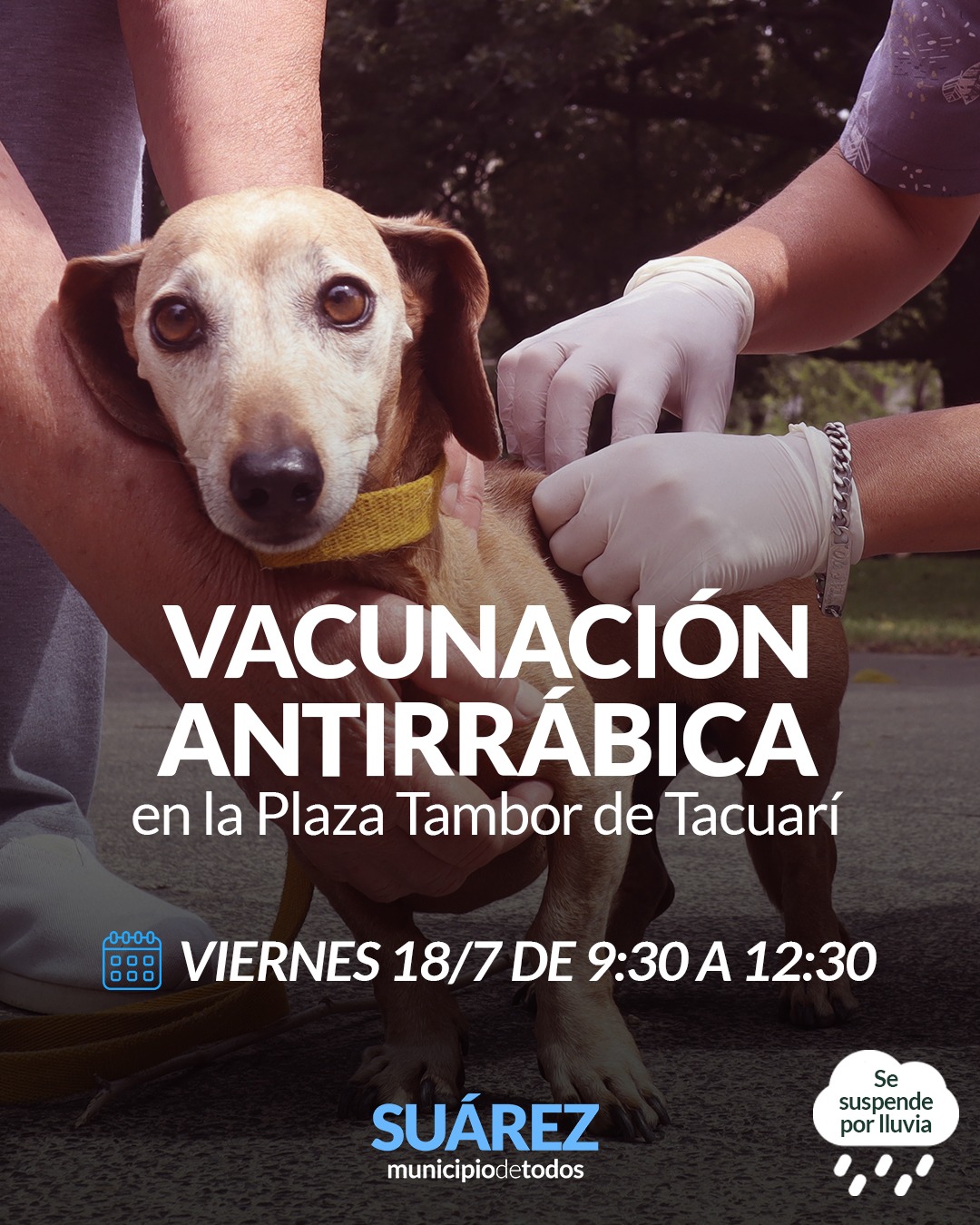 El equipo de profesionales desarrollará el viernes 18 de julio, una nueva jornada de vacunación antirrábica gratuita para perros y gatos en la Plaza Tambor de Tacuarí.