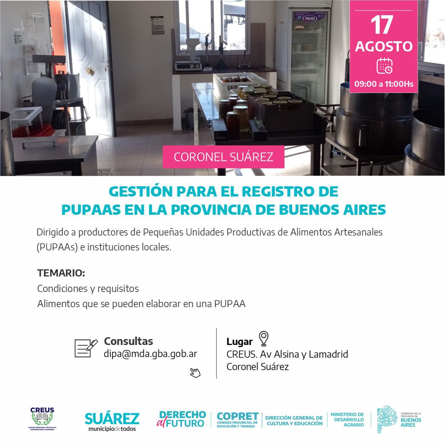 El próximo jueves 17 de agosto se realizará una capacitación en Habilitaciones PUPAA, en CREUS para productores/elaboradores.