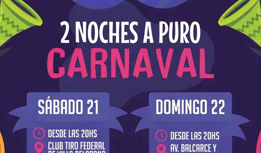 Presentación del grupo Oro Negro y Fabián y la voz de Silvina en dos jornadas de bailes de carnaval que prometen fiesta, música y alegría, pensadas para disfrutar en familia y con amigos. Con entrada TOTALMENTE GRATUITA El sábado 21 de febrero, desde las 20, el baile comenzará en el club Tiro Federal de Villa Belgrano, con la presentación musical