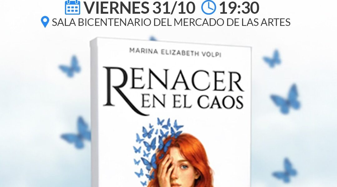 Presentación del libro “Renacer en el Caos” de Marina Elizabeth Volpi La Dirección de Gestión Cultural invita muy especialmente a toda la comunidad a la presentación del libro “Renacer en el Caos”, de la escritora Marina Elizabeth Volpi, que se realizará el viernes 31 de octubre, a las 19:30 horas, en la Sala Bicentenario del Mercado Municipal de las