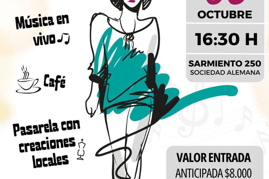 Fecha: 6 de octubre Hora: 16:30 hs Lugar: Sociedad Alemana, Sarmiento 250, Coronel Suárez Vení a disfrutar de una tarde única con: Música en vivo Café exquisito con tortas Pasarela con creaciones de emprendedores locales Paseo de emprendedores suarenses Entradas anticipadas: $8.000 Socios al día: $6.000 En puerta: $10.000 ¡No te lo pierdas! Conseguí tu entrada al 2926-509636 y súmate