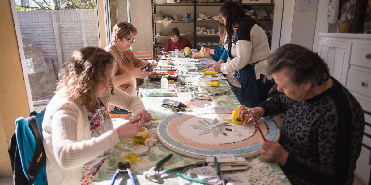 Vecinas de diferentes barrios aprenden las técnicas y detalles de este método decorativo basado en la unión de piezas con diferentes colores, texturas y formas. Gran cantidad de alumnos participan del Taller de Mosaiquismo – propuestas artística y formativa-, que viene desarrollando el Municipio a través de la Dirección de Gestión Cultural de mano de la Profesora Andrea Ruffa. El