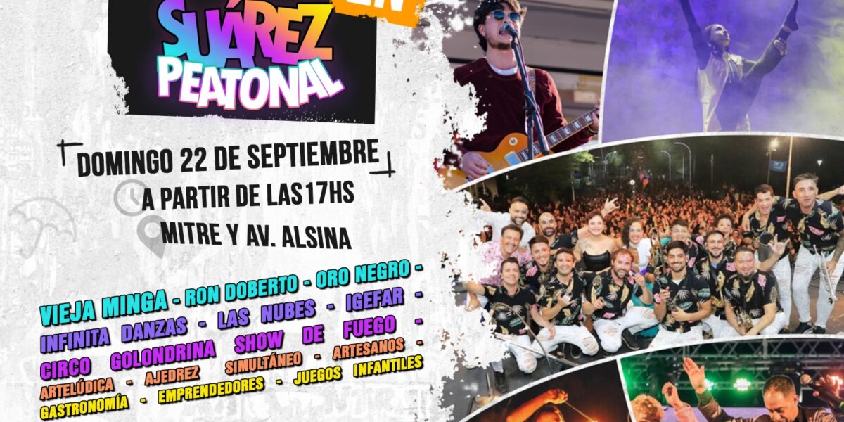 Nos encontramos en el centro de Suárez el 22 de septiembre a partir de las 17. Municipio y emprendedores unidos para que la juventud disfrute y las instituciones trabajen. Música, baile, espectáculos con el apoyo del ministerio de Producción y el Instituto Cultural bonaerense. Municipio, emprendedores y Gobierno Provincial trabajando juntos en un evento que “no tendrá gastos” para el