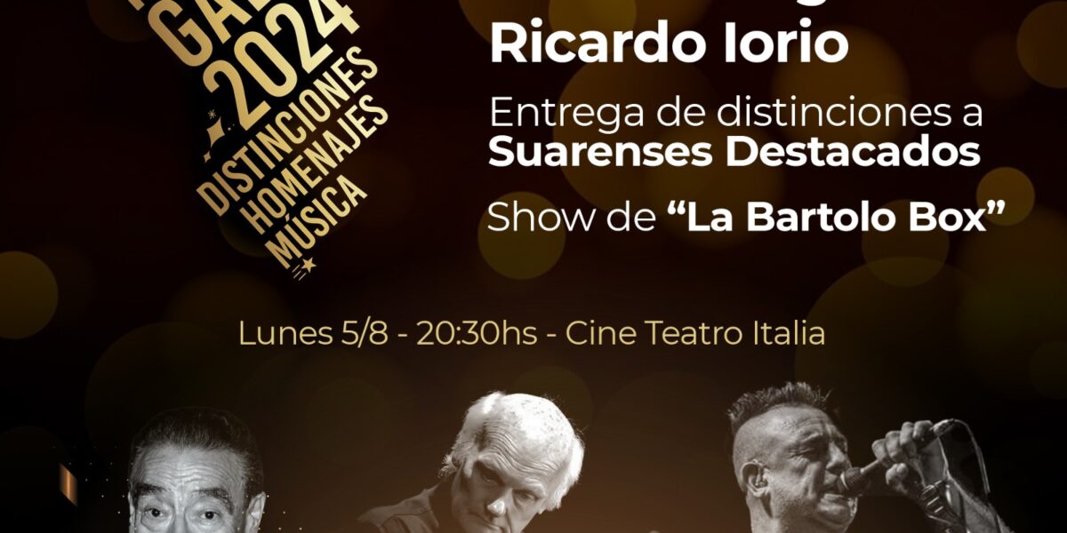 El cine teatro Italia será el escenario de un evento que reunirá a grandes artistas locales que rendirán homenaje a tres leyendas de la música: Ricardo Iorio la figura más importante del heavy metal argentino, el talentoso maestro Albino Lang y Juan Carlos Zeki la voz del tango suarense en vísperas del 142° aniversario de la creación del distrito de