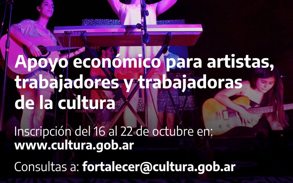 ? Ya se encuentra abierta la inscripción para Fortalecer Cultura, un apoyo económico individual no reembolsable para trabajadoras y trabajadores de la cultura que se ejecutará en tres cuotas de hasta 15.000 pesos por los meses de octubre, noviembre y diciembre con el objetivo de estar cerca de aquellos que más lo necesitan. ? Tenés tiempo hasta el 22