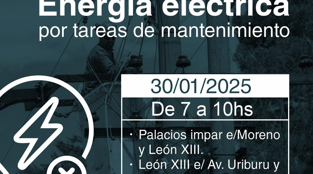 Edes SA Coronel Suárez comunica a sus usuarios que por tareas de mantenimiento en media tensión interrumpirá el suministro de energía eléctrica el día jueves 30/01/2025 desde las 07:00hs hasta las 10:00hs. Las calles afectadas son: -Palacios impar e/Moreno y León XIII. -León XIII e/ Uriburu y San Martín. Recordamos a nuestros usuarios, que si deben realizar alguna tarea en
