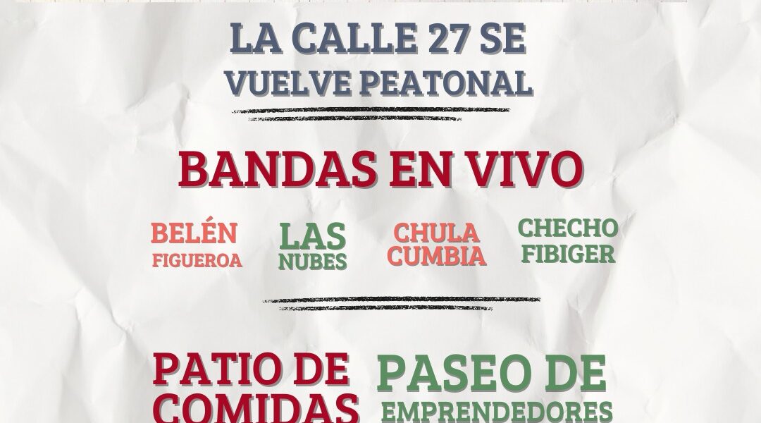 Organizada por el Municipio de Coronel Suarez en conjunto con Casa Galpon Y Lets Pub. En un trabajo en conjunto público y privado, la calle 27 vuelve a ser peatonal para encontrarnos, pasear, comer rico y disfrutar música en vivo Se presentarán artistas de la localidad, de Coronel Suàrez y de Bahía Blanca Belén Figueroa 20:00 hs Las Nubes 21:00