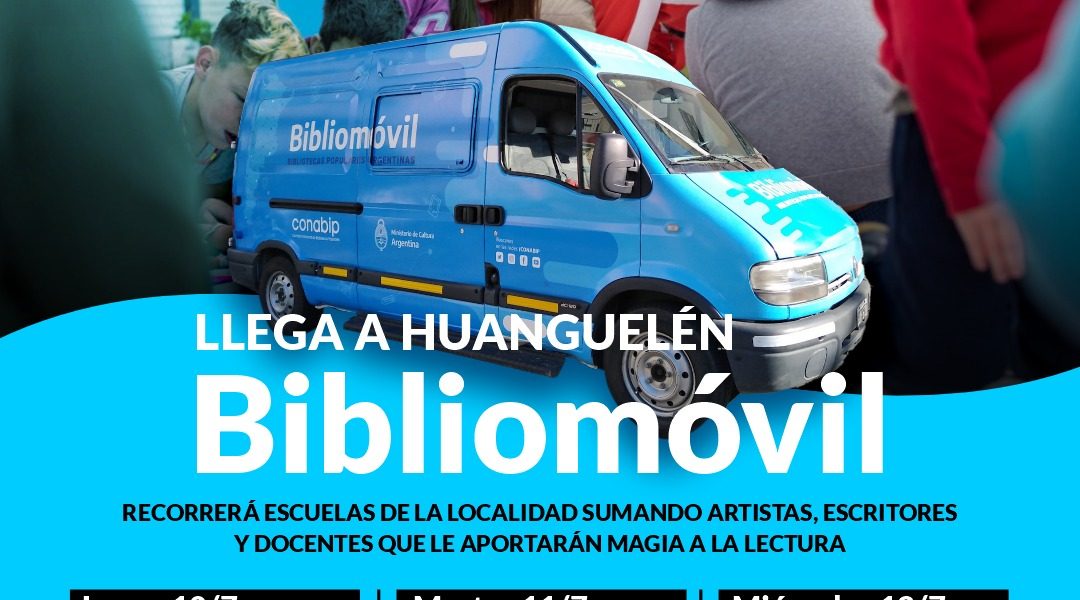 Tras gestiones realizadas por el Intendente Ricardo Moccero ante el Instituto Cultural bonaerense, el Bibliomóvil recorrerá diversos establecimientos educativos en Huanguelén del 10 al 12 de julio, con la colaboración de escritores, artistas y docentes y de la Biblioteca Popular “Baldomero Fernández Moreno”. Los Bibliomóviles son vehículos equipados como bibliotecas itinerantes que ofician además como centros culturales ambulantes, ya que