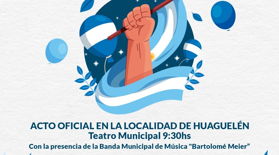 Acto Oficial en la localidad de Huanguelén. Lugar: Teatro Municipal Hora 9.30 Con la presencia de la Banda Municipal de Música “Bartolomé Meier”. Entrada Libre y Gratuita