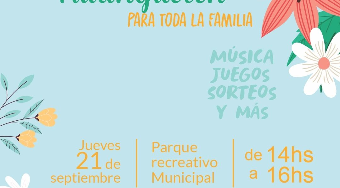 El jueves 21 de septiembre nos encontramos en el Parque Recreativo Municipal de 14 a 16. Habrá música, juegos recreativos, sorteos y mucha diversión. Organiza área de Deportes.