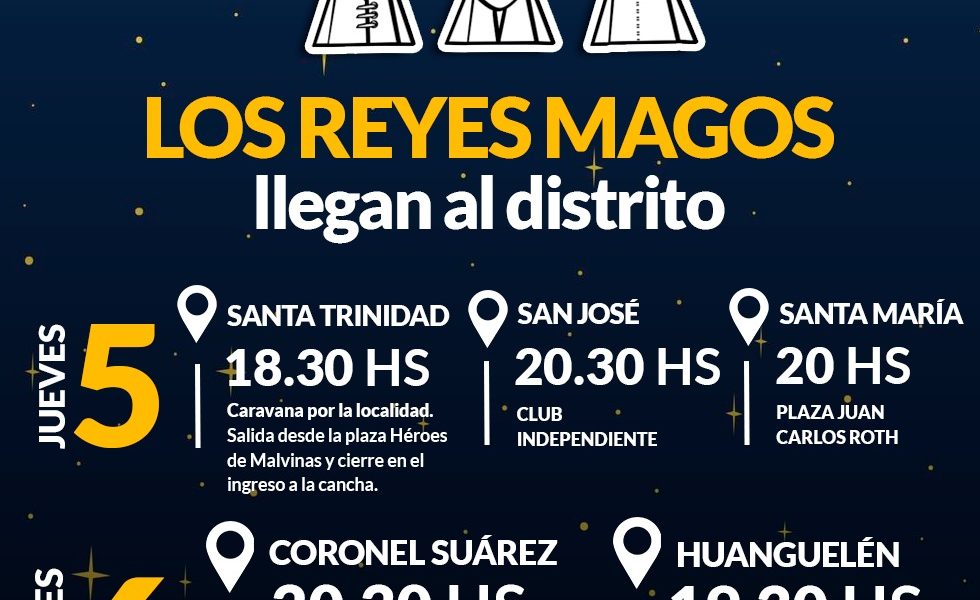 Los Pueblos Alemanes reciben a los legendarios Reyes Magos. Mientras que en Coronel Suárez, Melchor,Gaspar y Baltasar recorrerán las sedes del programa Escuelas Abiertas en Verano