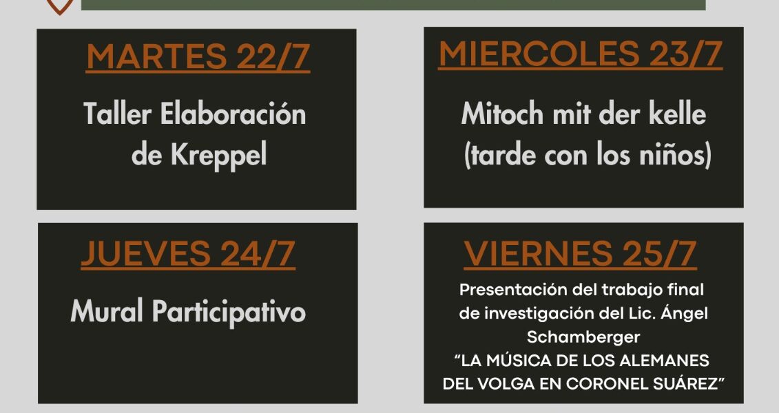 El Intendente Municipal Ricardo Moccero junto al delegado de la tercer colonia alemana Juan Pablo Eberle; invitan a toda la comunidad a participar del cronograma de actos y festejos de las Fiestas Patronales de Pueblo Santa María. La actividad central tendrá lugar el domingo 14 de septiembre a las 10:00 con la celebración de la Santa Misa, luego el acto