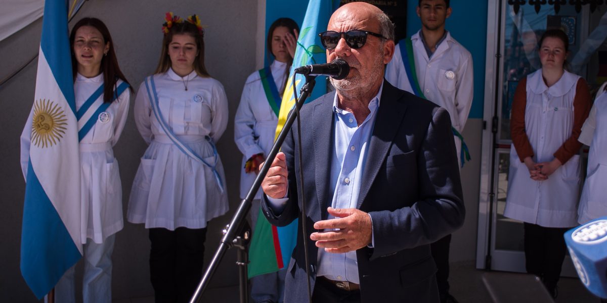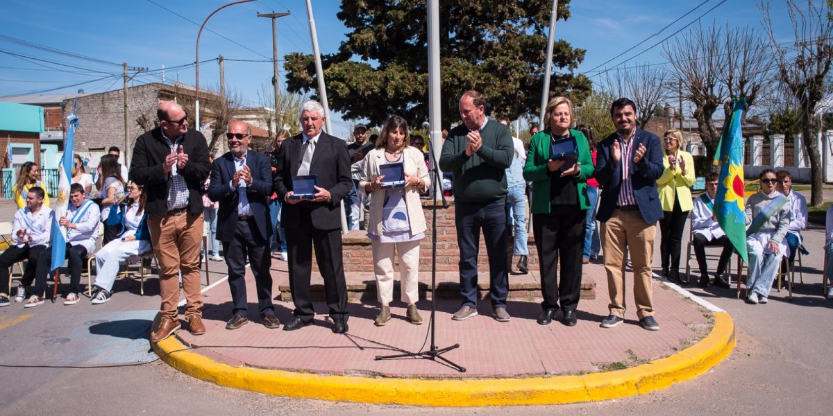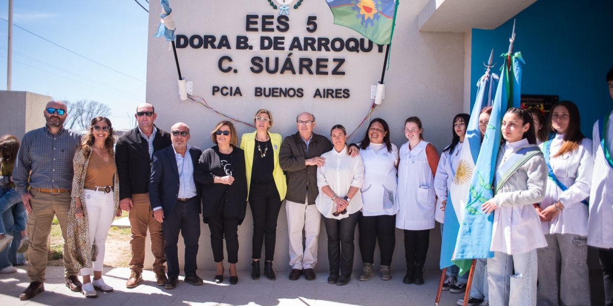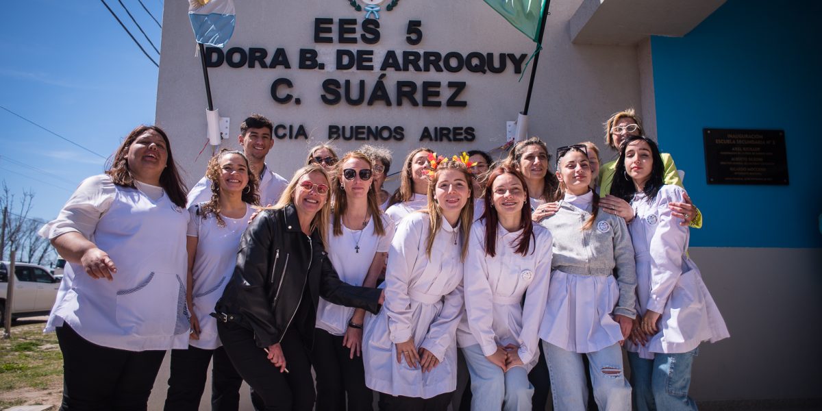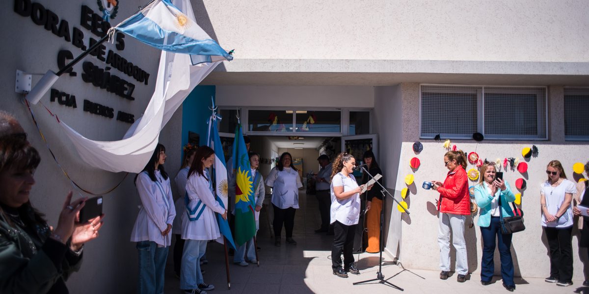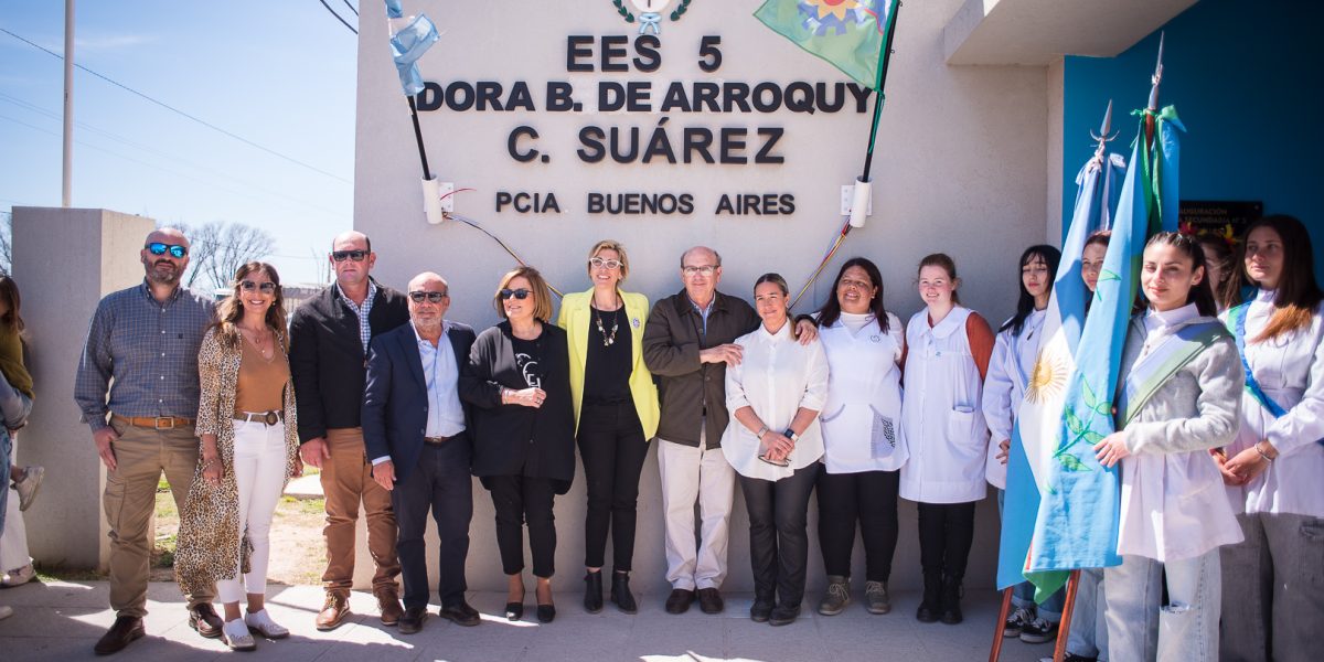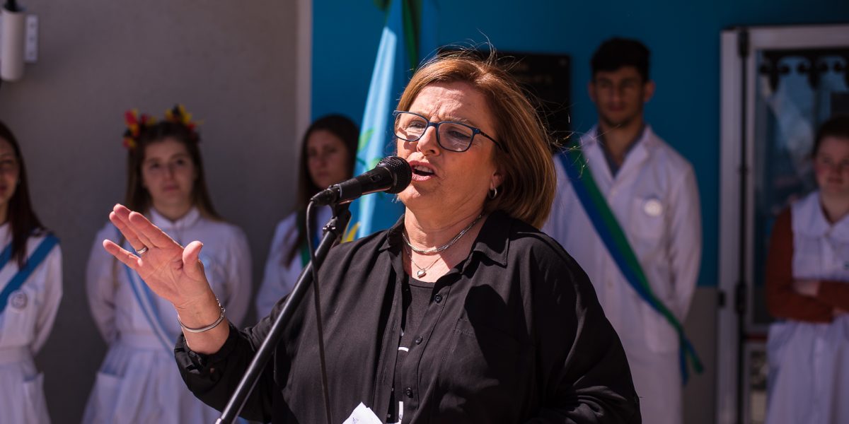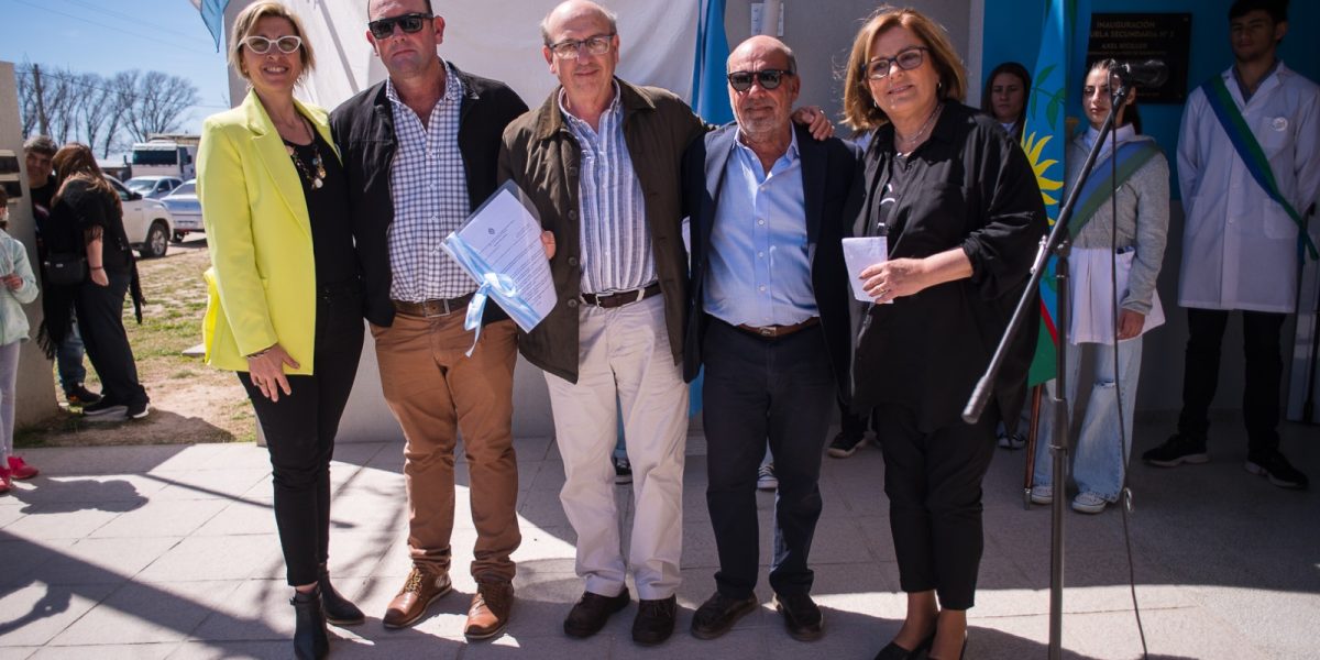 El Intendente Ricardo Moccero junto al delegado Guillermo Apellhanz, funcionarios e integrantes de la comunidad educativa de la Escuela Secundaria N° 5, participaron este domingo 1 de octubre del acto de imposición del nombre de “Dora Biurrarena de Arroquy” a la institución; nombre elegido por la propia comunidad, tras un proyecto impulsado por el Centro de Estudiantes de la Secundaria.