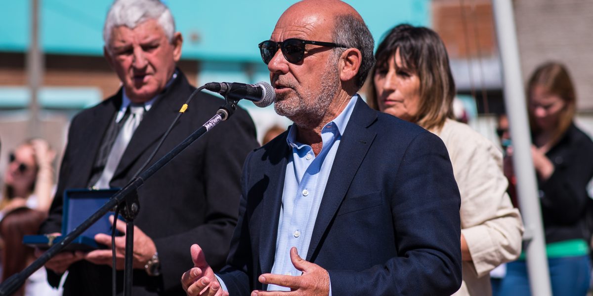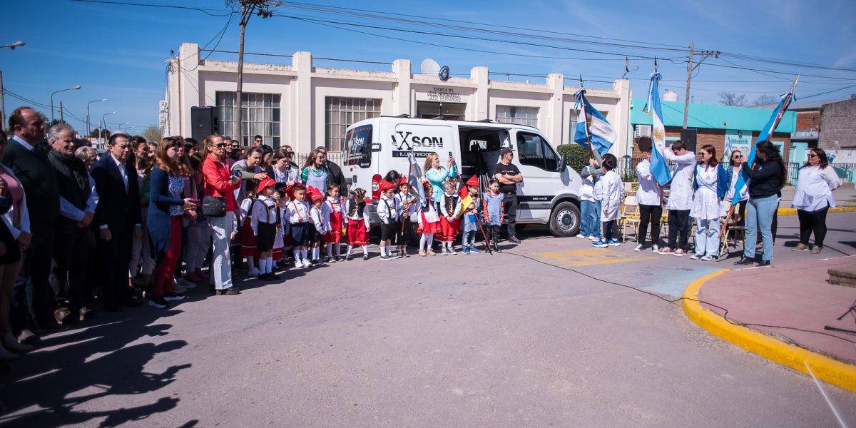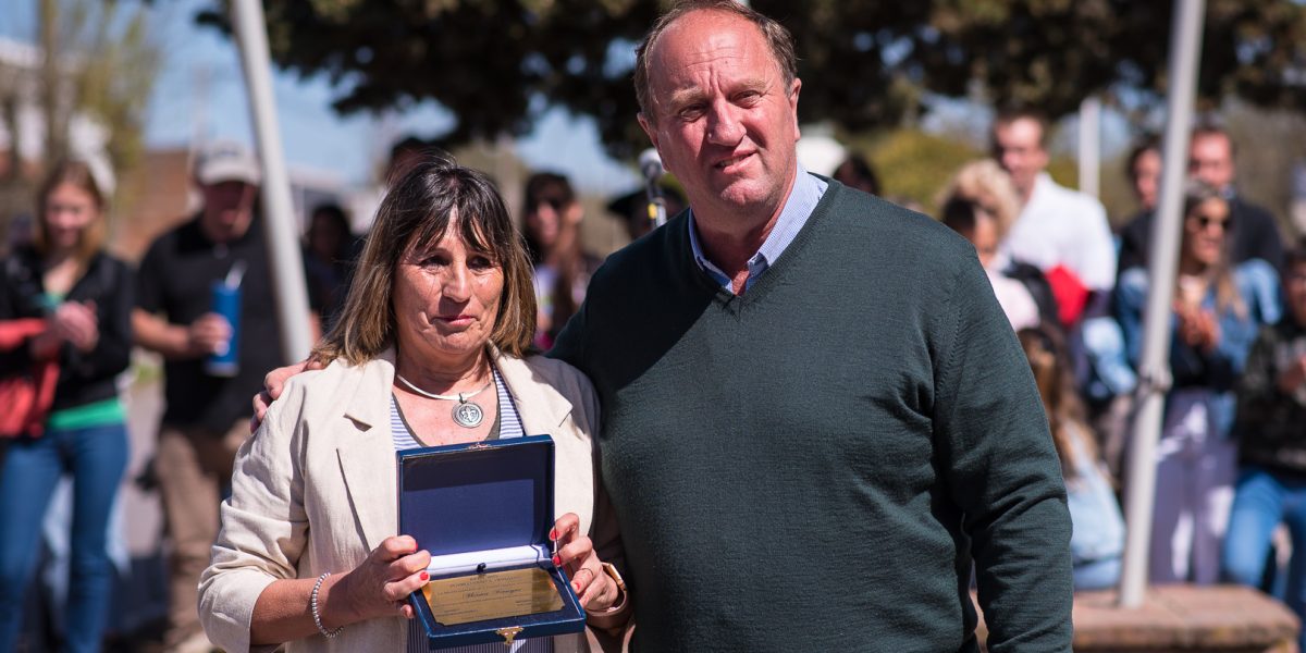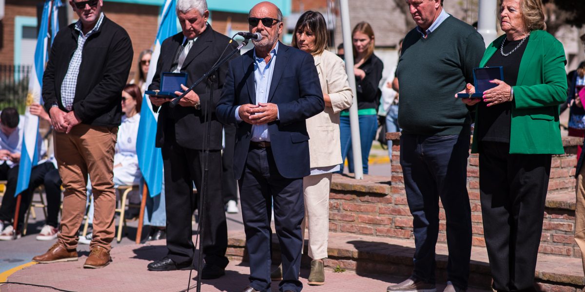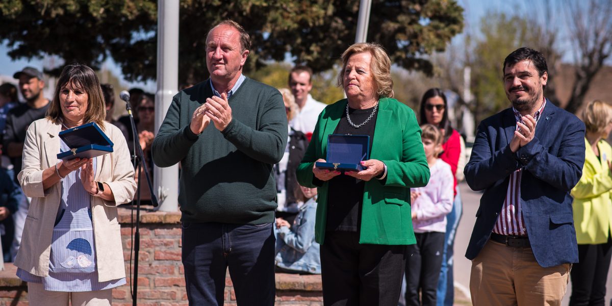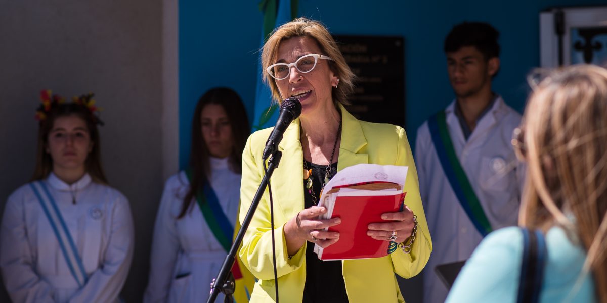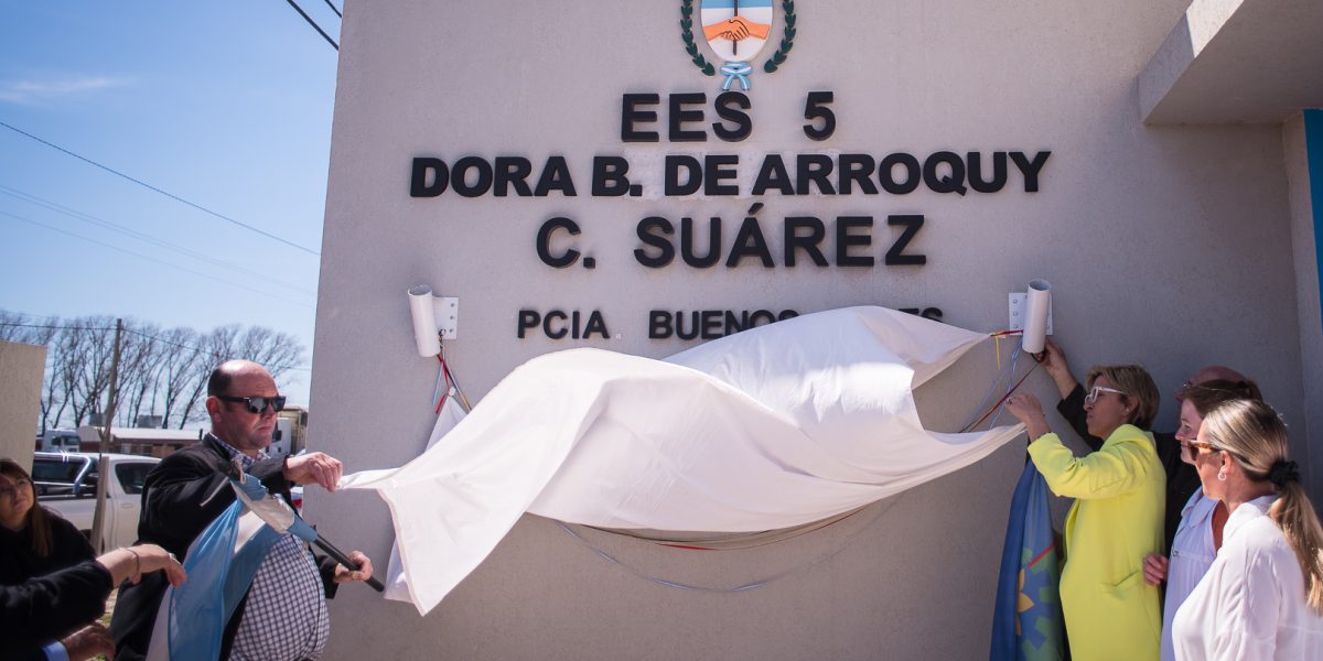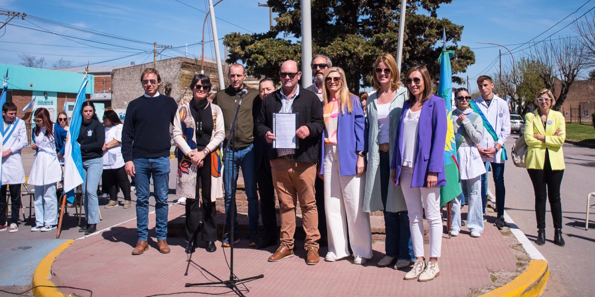 El Intendente Ricardo Moccero junto al delegado Guillermo Apellhanz, funcionarios e integrantes de la comunidad educativa de la Escuela Secundaria N° 5, participaron este domingo 1 de octubre del acto de imposición del nombre de “Dora Biurrarena de Arroquy” a la institución; nombre elegido por la propia comunidad, tras un proyecto impulsado por el Centro de Estudiantes de la Secundaria.