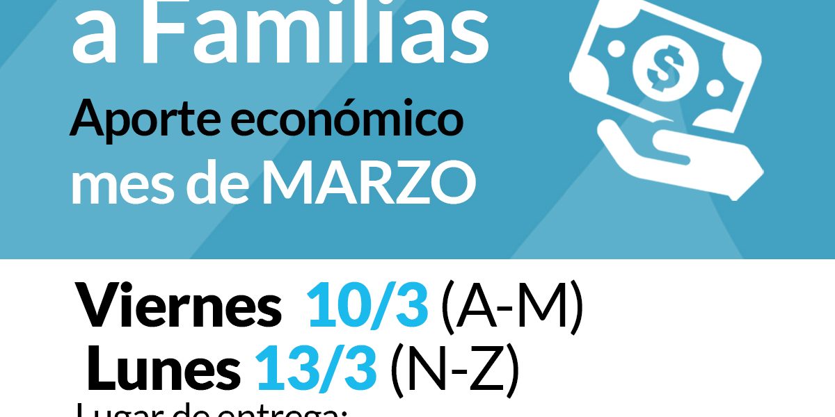 Mañana VIERNES 10 de marzo, de la A a la M y el LUNES 13, de la N a la Z. Lugar de entrega: Casey 1244 de 7 a 10:30. Las familias que cobran las asistencias habitualmente a través de tarjeta bancaria, continuarán haciéndolo por igual medio. En tanto las familias con domicilio en los pueblos alemanes lo harán en