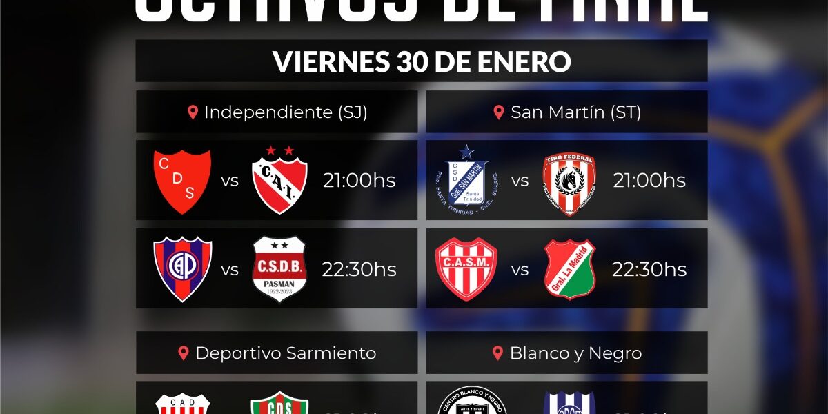 Torneo organizado por la Dirección de Deportes del Municipio entra en su etapa decisiva. Este viernes 30 de enero se disputarán los octavos de final, con el siguiente cronograma: Cancha de Club Independiente 21:00 — Sarmiento de Carhué vs. Independiente 22:30 — Peñarol de Pigüé vs. Belgrano de Pasman Cancha de San Martín de Santa Trinidad 21:00 — San Martín