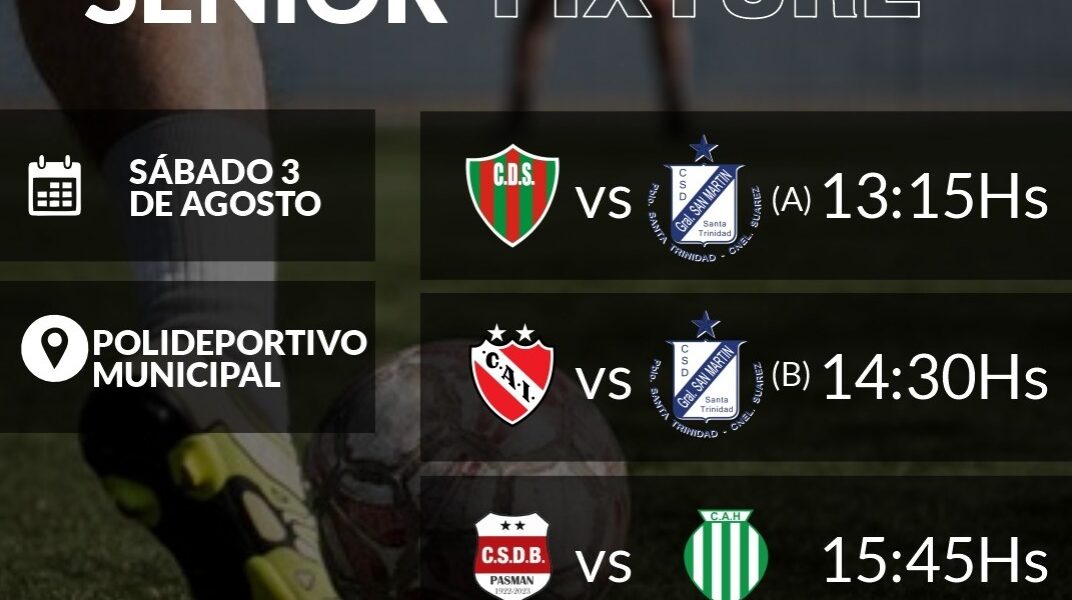 El pasado sábado 10 de agosto, se desarrolló una nueva fecha del Torneo de Fútbol 9 Senior que organiza la Municipalidad de Coronel Suárez a través de la dirección de Deportes. Los resultados: -San Martín de Santa Trinidad (B) 1 (Wilt Gabriel) – San Martín de Santa Trinidad (A) 1 (Recofsky Iván) -Deportivo Sarmiento 1 (Monzon Iván) – Atlético Huanguelén
