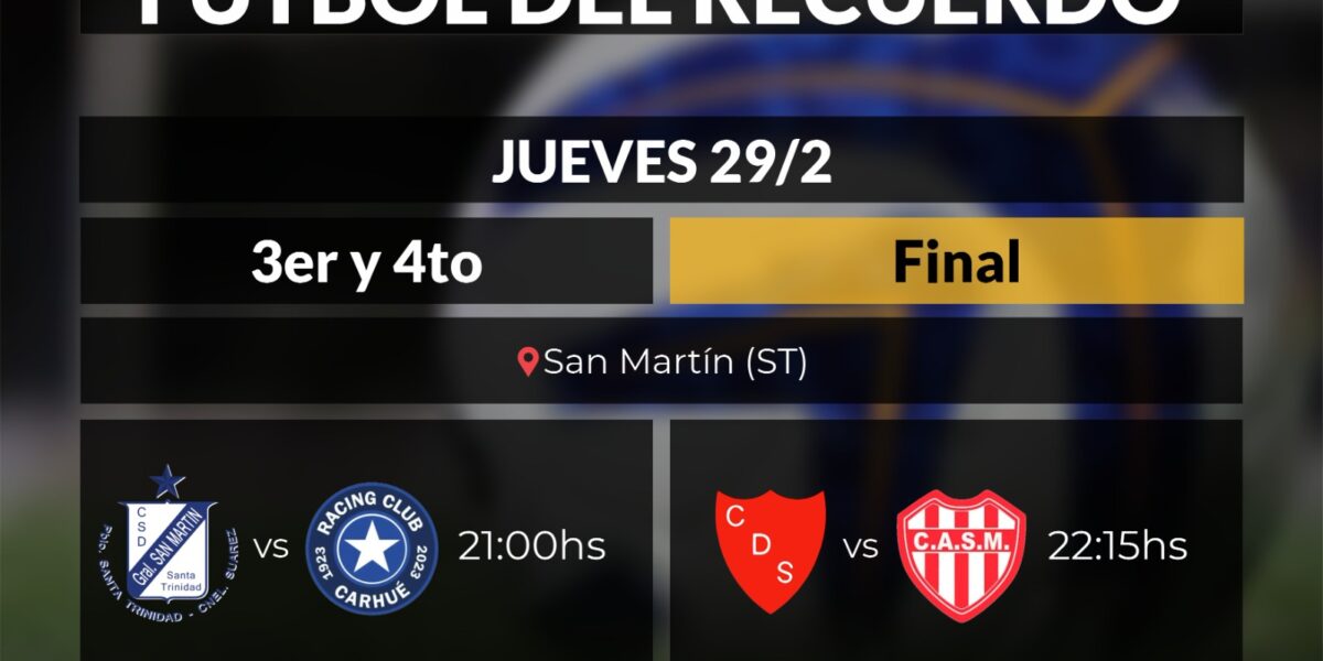 Este jueves 29 de febrero, a las 22:15, se definirá en cancha de San Martín de Santa Trinidad quien será el ganador de la copa de veteranos. Se disputaron las semifinales del clásico torneo de veteranos que organiza la dirección de Deportes de la Municipalidad de Coronel Suárez. Durante la noche del domingo 25, Racing de Carhué recibió a Sarmiento.