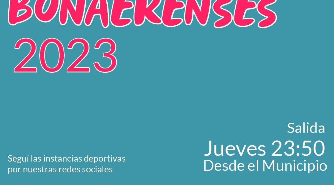 La dirección de Deportes informa que la delegación que participará de la Final de los Juegos Bonaerenses 2023 partirá el jueves a las 23.50, desde el Municipio. Unos 400 jóvenes serán parte de una nueva edición de los Juegos Bonaerenses, compitiendo en un total de 20 disciplinas entre: rugby, hockey, handball, fútbol playa, softball, deportes electrónicos, voley, beach voley,