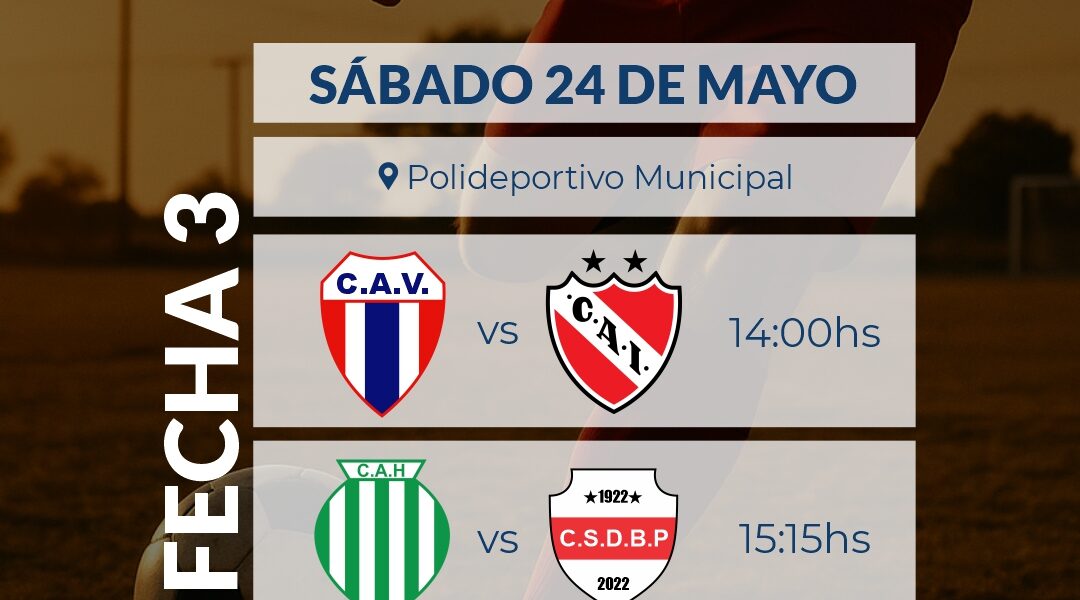 El sábado 24 de mayo se llevó a cabo la tercera fecha del Torneo de Fútbol 9 Senior, organizado por la Dirección de Deportes del Municipio de Coronel Suárez, en el Polideportivo Municipal Abierto. En esta jornada, A. Ventana venció a Independiente por 3 a 1, con goles de Wilt, Quiroga y Peredo. El descuento lo marcó Merlo para