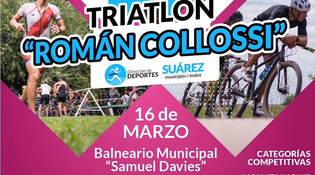 Fecha: 16 de marzo Lugar: Balneario Municipal “Samuel Davies” Programación: – 11:30hs: Entrega de números – 12:30hs: Charla previa – 13:00hs: Largada Inscripción: Llamando al 2926-469350 Valor: $10.000 Posta por participante: $7.000 TRIATLÓN SHORT: Natación: 750m., Ciclismo 20 km., Pedestrismo 5km. Categorías por sumatoria de edad: menos 100 y más 100 femenino, masculino y mixto. CATEGORÍAS COMPETITIVAS: Mountain Bike y
