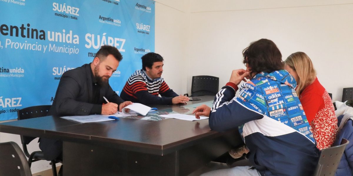 Con la presencia del Jefe de Gabinete Mauro Moccero y el Director del Instituto Municipal de la Vivienda de Coronel Suárez, doctor Luciano Leibold, se firmaron los primeros convenios de pago con los beneficiarios del programa Buenos Aires CREA, línea de crédito no bancario que entrega el Ministerio de Hábitat y Desarrollo Urbano de la provincia de Buenos Aires. El