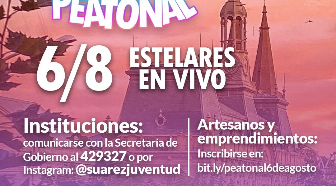 El área de Juventud de la secretaría de Gobierno invita a instituciones y artesanos / emprendedores a participar de la edición especial 6 de agosto de Suárez Peatonal. El tradicional paseo se suma a los festejos por un nuevo aniversario de nuestra ciudad. En el caso de las instituciones que deseen participar con un stand, podrán comunicarse con la secretaría