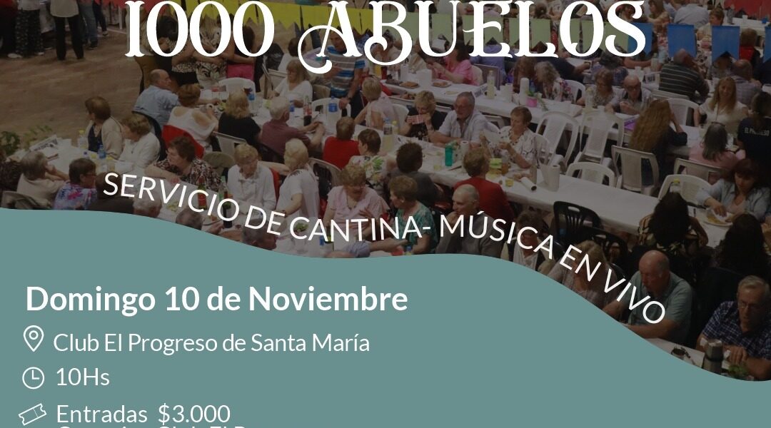 Será el domingo 10 de noviembre, a partir de las 10:00, en el Club El Progreso de Pueblo Santa María. Ameniza: Fabián y la voz de Silvina. Las entradas tienen un costo de $3.000 y se encuentran a la venta en el Consejo de Personas Mayores –Urquiza y Avellaneda- y los Centros de Jubilados del distrito.- Organiza Club El Progreso