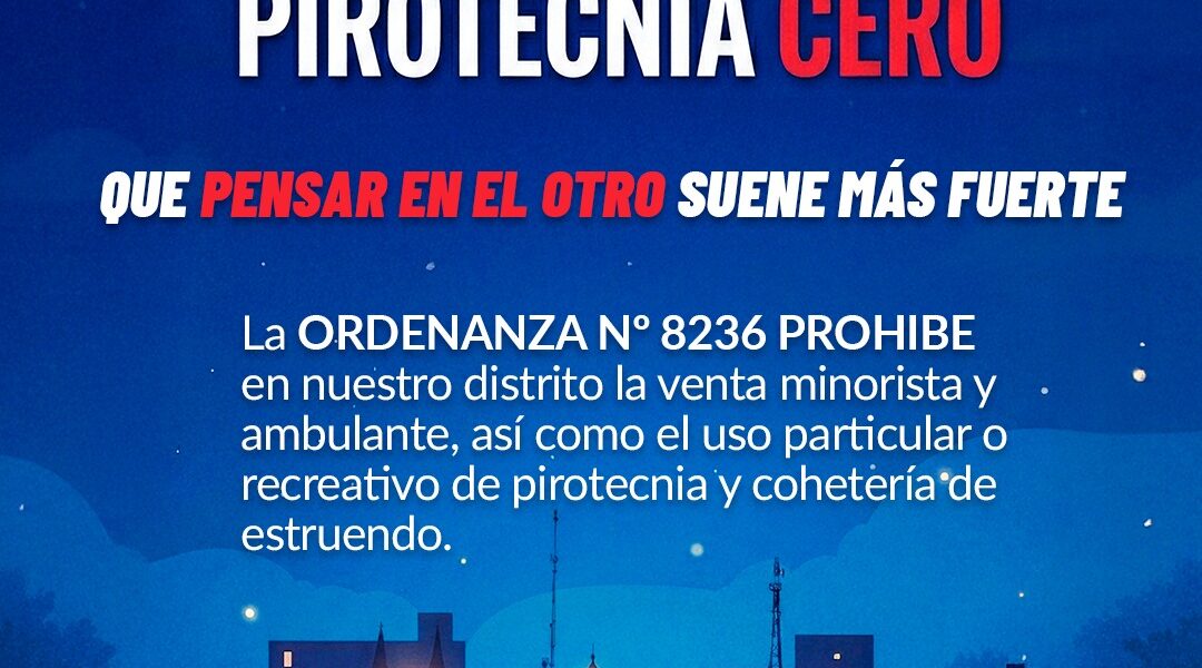 De acuerdo a la Ordenanza Nº 8236, en el distrito de Coronel Suárez está prohibida la venta minorista y ambulante, así como el uso particular o recreativo de pirotecnia y cohetería de estruendo. Más allá de la norma, este llamado tiene un sentido profundo: cuidar la salud y el bienestar de nuestra comunidad. El uso de pirotecnia afecta especialmente