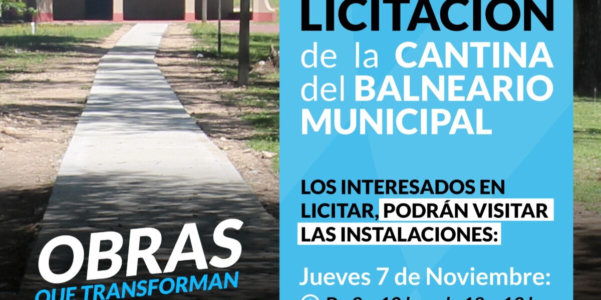 La Secretaría de Gobierno y Seguridad informa a los interesados en licitar el pliego de la Cantina del Balneario Municipal y deseen realizar una visita a las instalaciones, podrán hacerlo el jueves 7 de noviembre en los siguientes horarios: 9 a 10 hs 18 a 19 hs Lugar: Predio Municipal del Balneario “Samuel Davies” Para consultas adicionales, comunicarse con la