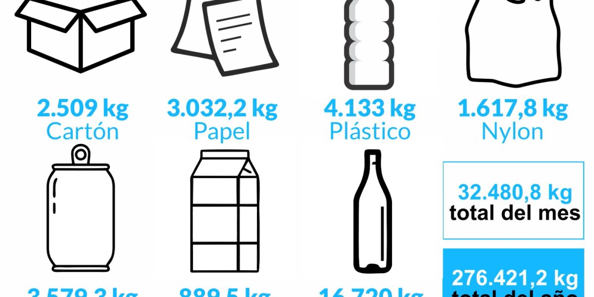 En lo que va del año se recuperaron 153.135,6 kg. de material en la Planta de Separación y Tratamiento de Coronel Suárez. Material recuperado en la Planta de Separación y Tratamiento de Coronel Suárez: Cartón: 35.270,1 kg Papel: 16.617,9 kg Plástico: 14.462,7 kg Nylon: 13.541,1 kg Aluminio: 922,4 kg Tetra: 4.232,4 kg